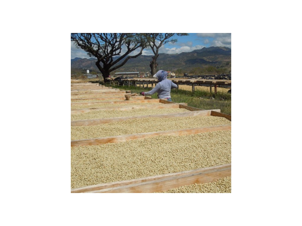 Po sklizni jsou pouze plně vyzrálé třešně zpracovány naturální metodou v Las Nubes Dry Mill. Sušení na stíněných vyvýšených postelích trvá přibližně 35–40 dní a umožňuje pomalou fermentaci, která zvýrazňuje přirozenou sladkost a plné tělo kávy.